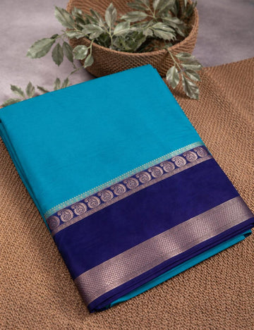 Royal Blue and Parrot Green Kalyani Cotton Saree with Zari Border