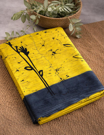 Classic Navy Checkered Mulmul Cotton Saree with Sunshine Yellow Border