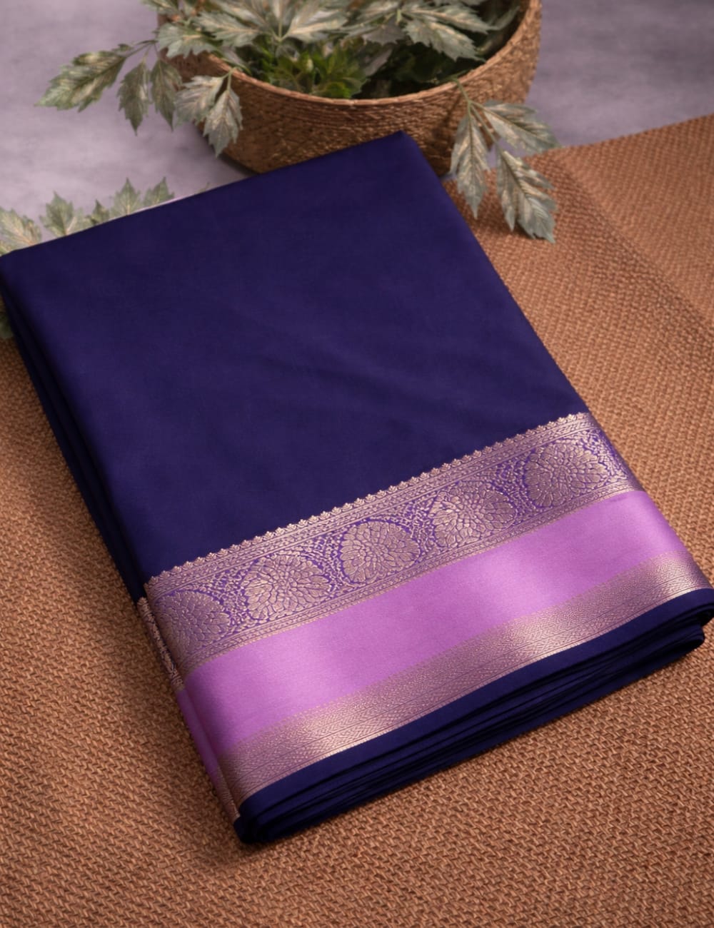 “Graceful Blue Crepe Silk Saree with Lavender Border”