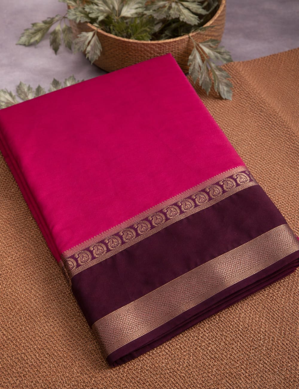 Magenta and Black Kalyani Cotton Saree with Silver Zari Peacock Border