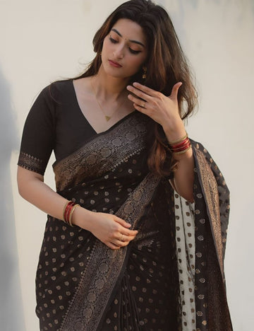 Royal Brown Soft Silk Saree with Gold Zari Lines