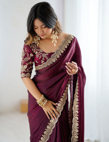 "Glide in elegance with this Tissue Silk Ferry saree — light, lustrous, and perfect for every festive vibe. Effortless drape, timeless charm!"