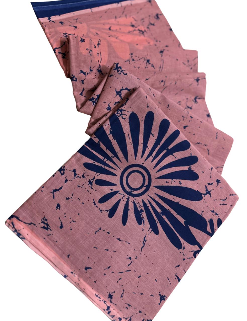 Saree Color: Baby Onion Pink with Navy Blue Batik Design