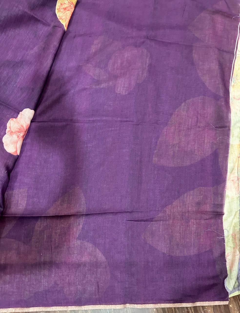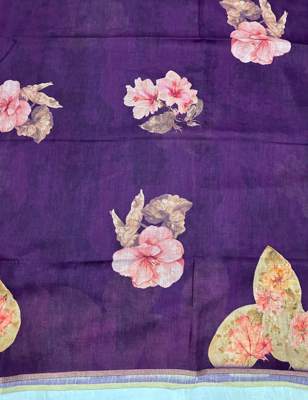 Dark Violet Color Jute Silk Saree with Elegant Floral Print and Matching Blouse