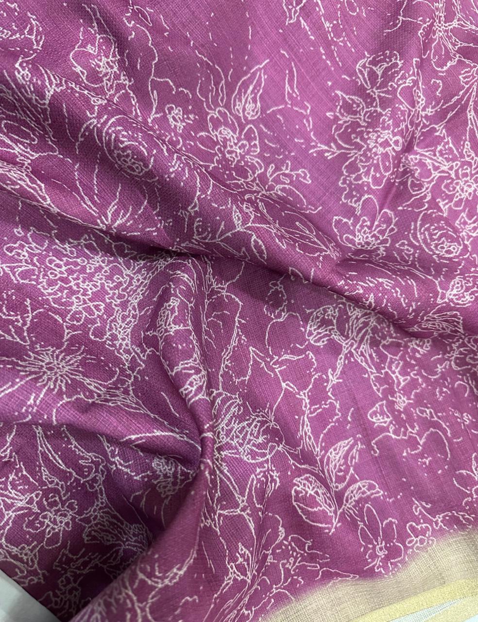 Step into elegance with this Magenta Jute Silk Saree, crafted for women who adore the perfect blend of tradition and style. The rich jute silk fabric carries a natural matte texture, beautifully contrasted by a lustrous golden border. The delicate floral weave across the pallu adds an artistic touch, while the tassel finish completes the look with grace.