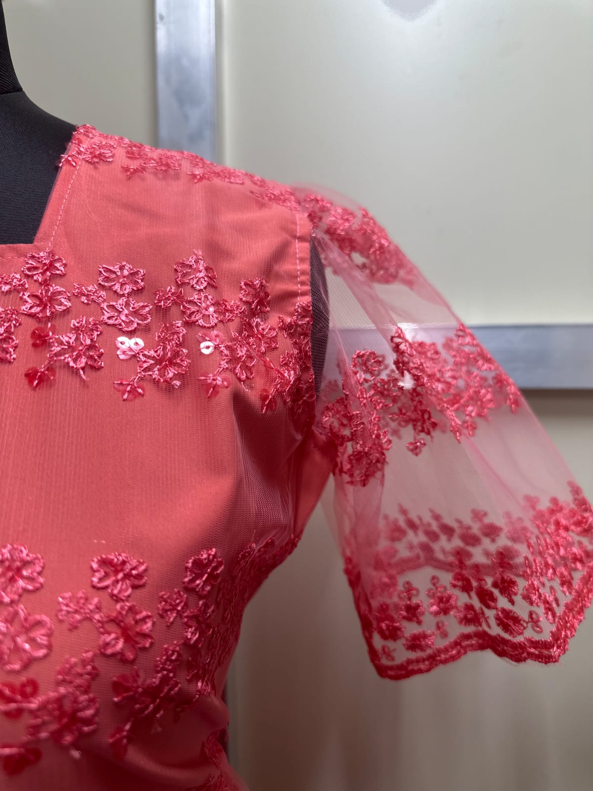 Elegant Peach Net Lace Maxi Dress for Women | Party Wear Long Frock