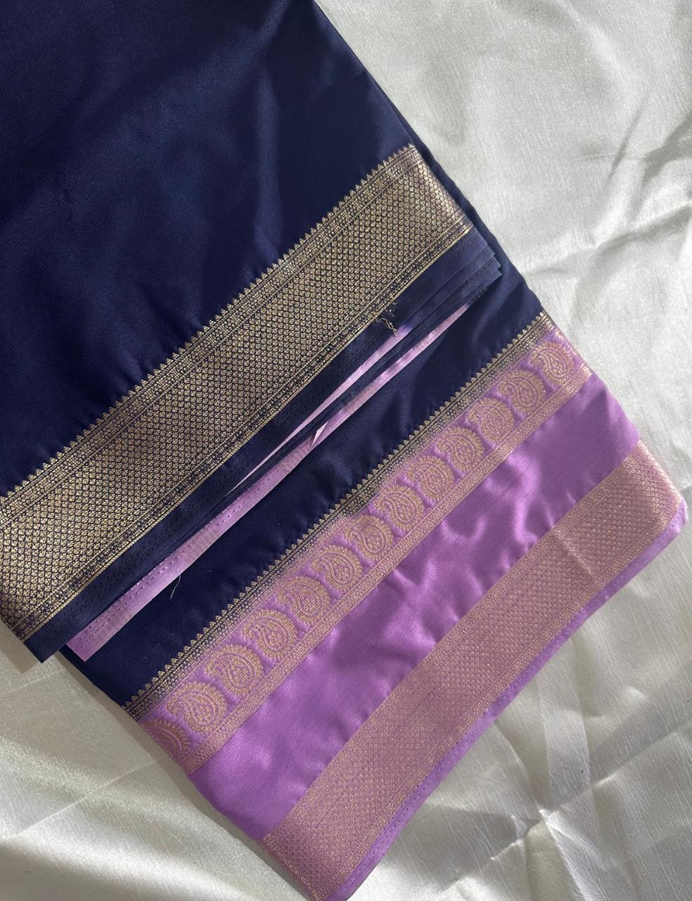 “Graceful Blue Crepe Silk Saree with Lavender Border”