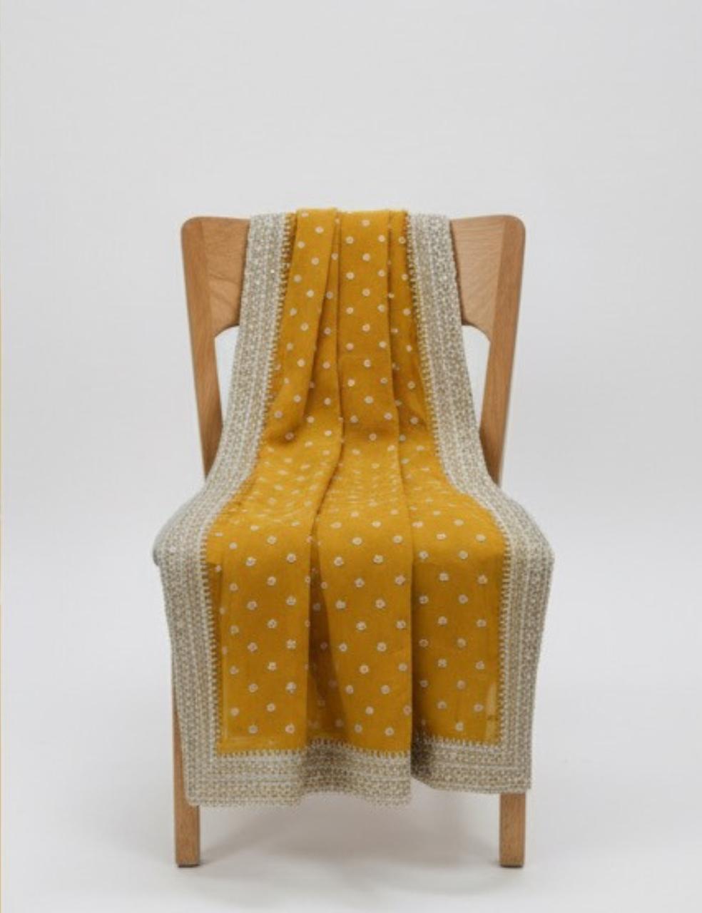 MANGO YELLOW PARTY WEAR SAREE WITH HEAVY SILVER EMBROIDERY BORDER ✨