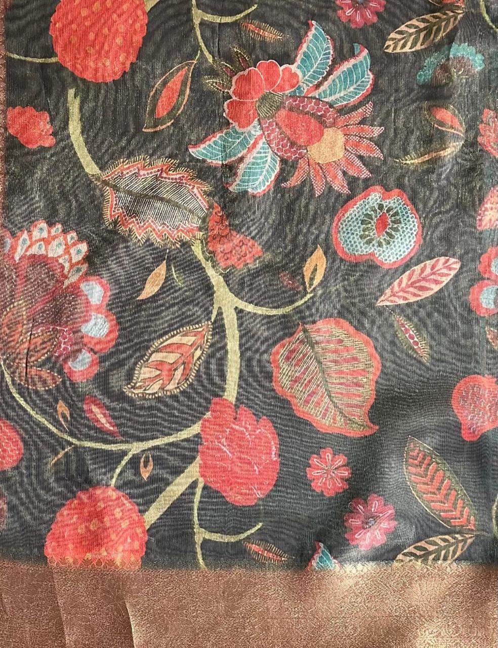 Enhanced with a rich Antique Gold zari woven border featuring traditional floral detailing.