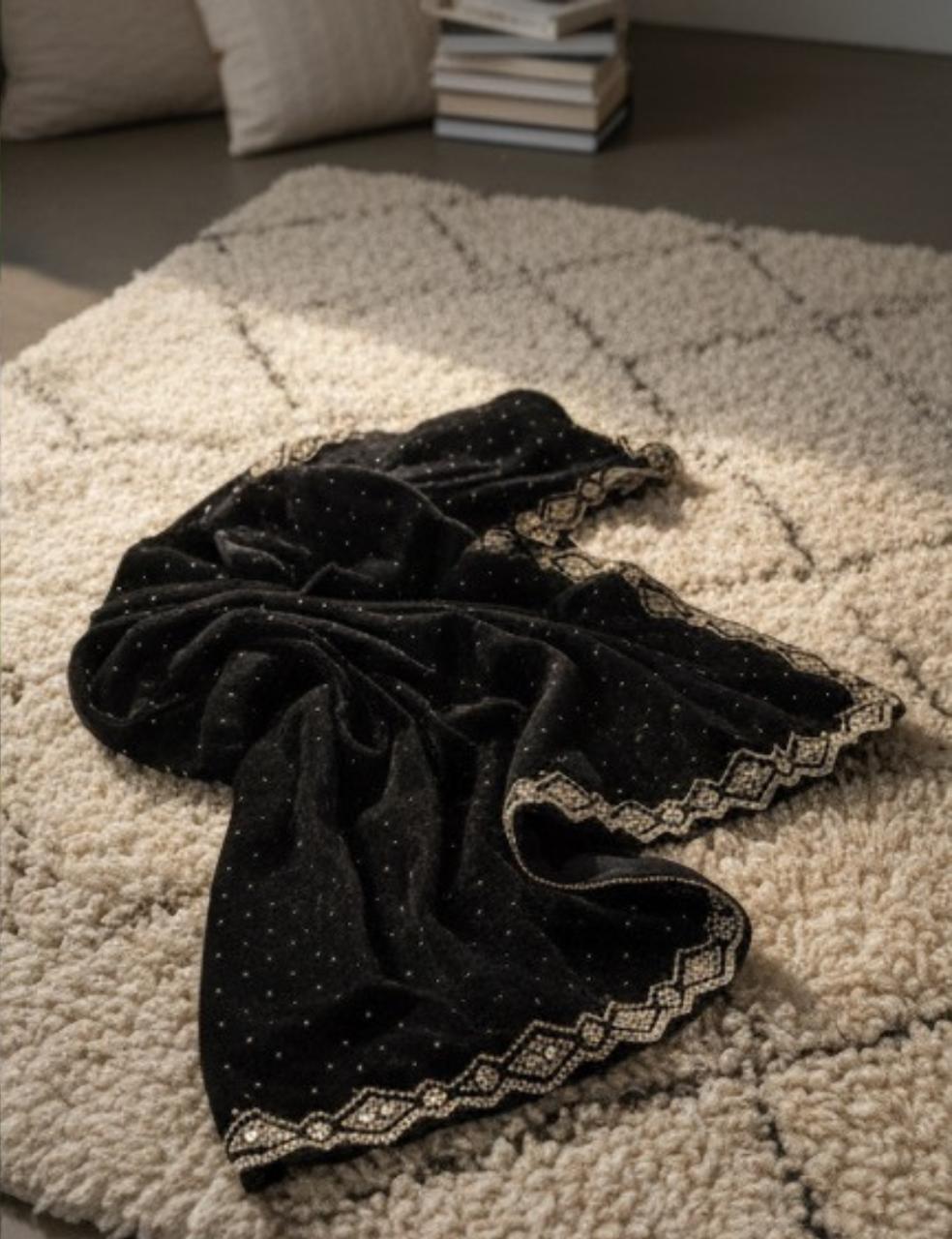 ROYAL BLACK PARTY WEAR SAREE WITH STONE & MIRROR WORK BORDER ✨