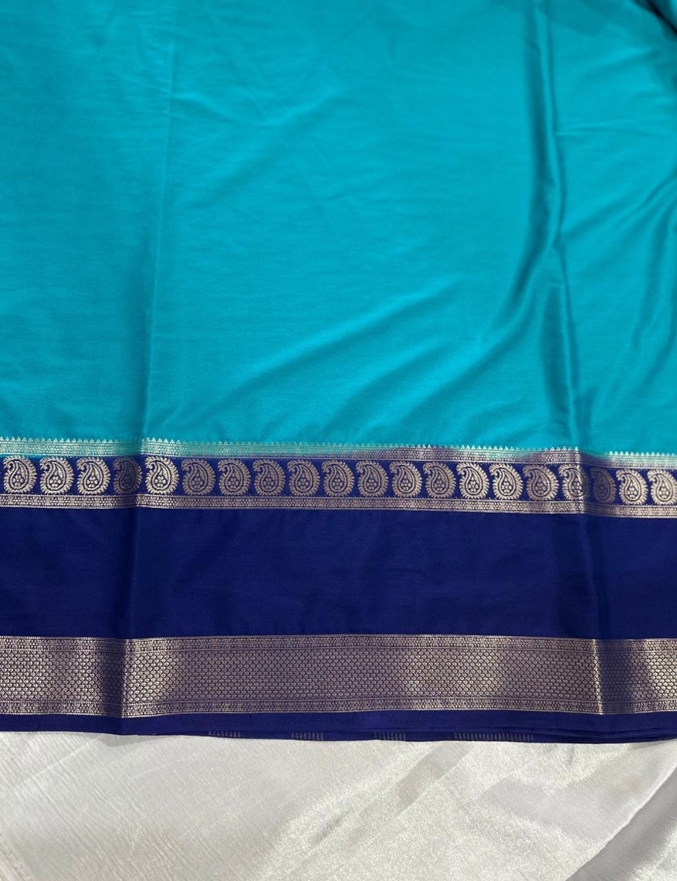 “Teal Crepe Silk Saree with Elegant Dark Navy Blue Border”